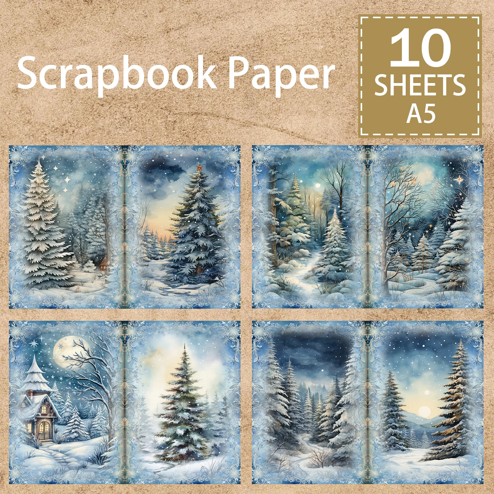 10 Sheets A5 Size Winter Forest Trees Background Vintage Grunge Journal Planning Scrapbooking