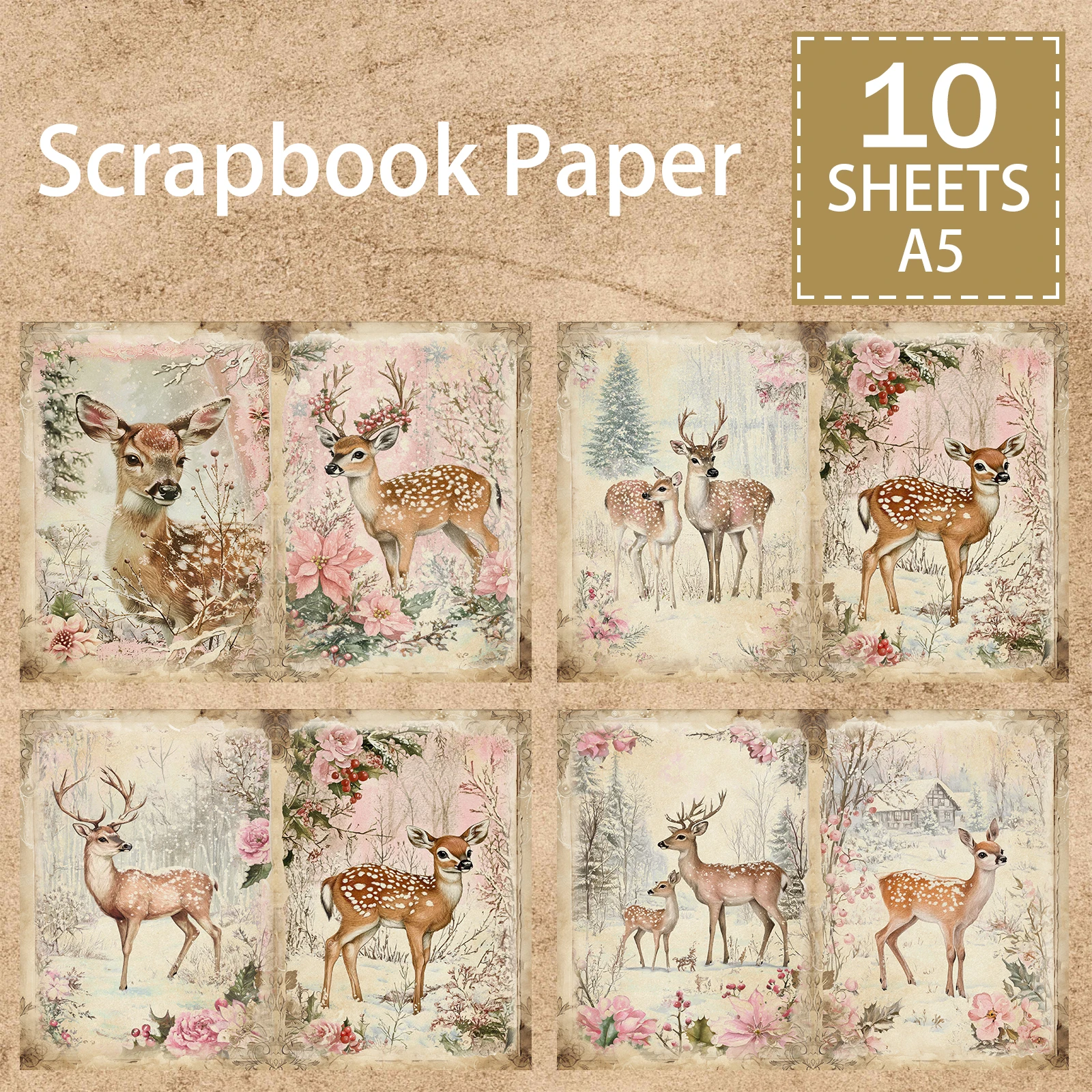 10 Sheets A5 Size Snow Elk Background Vintage Grunge Journal Planning Scrapbooking