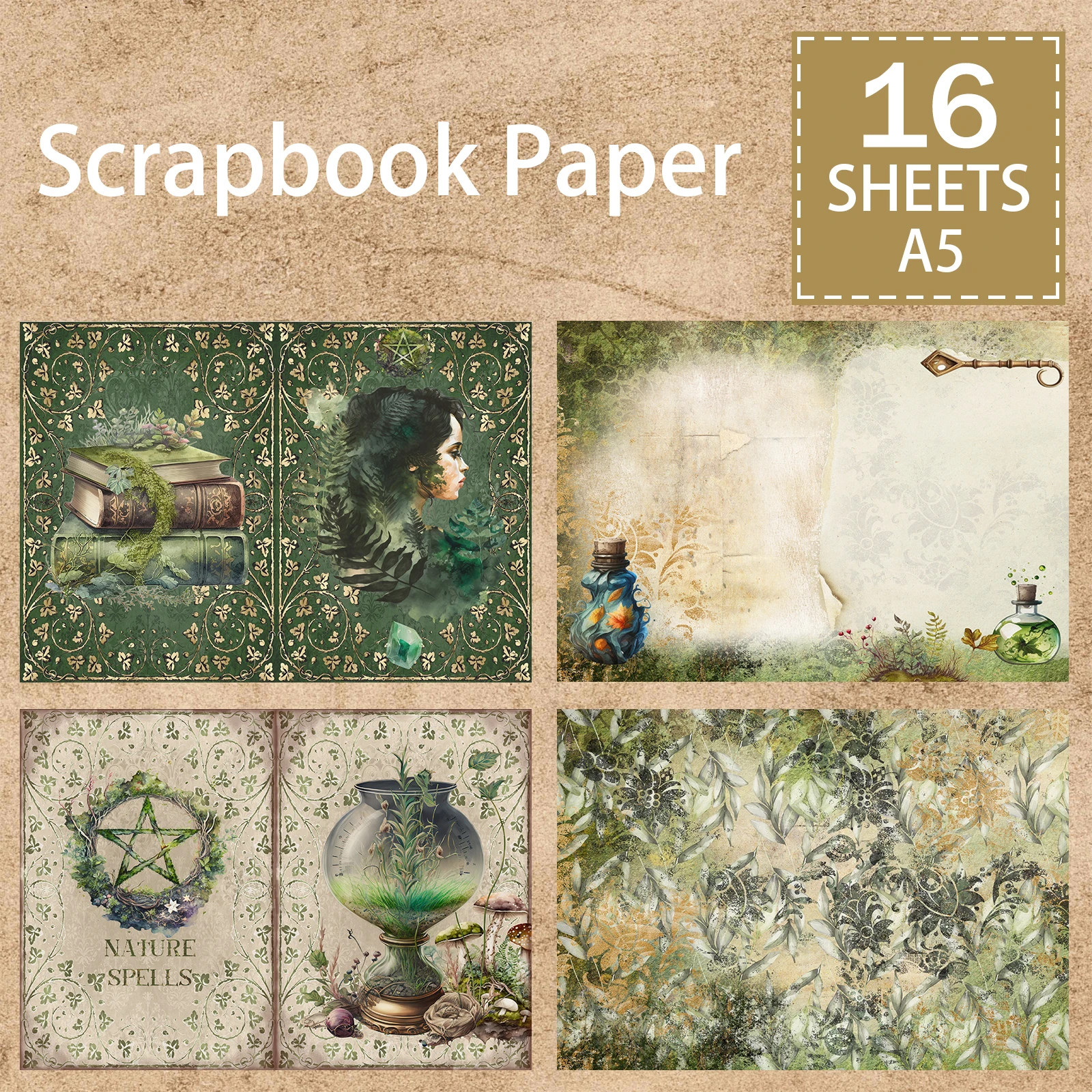 16 Sheets A5 Size Halloween Jungle Background Witch Magic Potion Black Cat Vintage Grunge Journal Planning Scrapbooking
