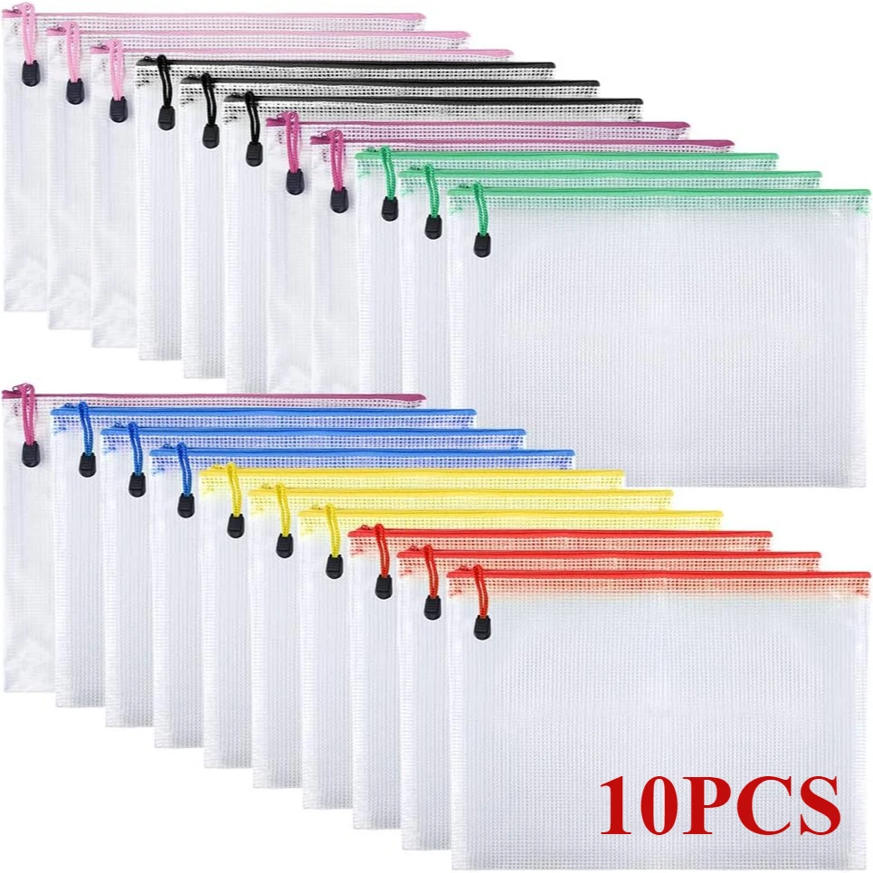 5PCS A3/A4/A5/A6 Mesh Zipper Pouch Document Bag Waterproof Zip File Folders Pencil Case Storage Bags School Office Supplies