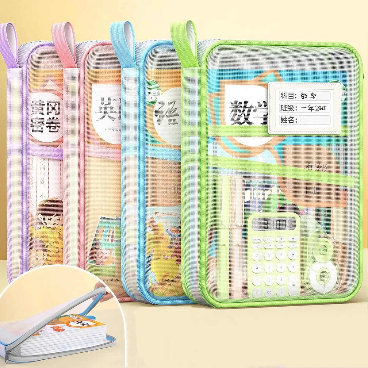 A4 Stationery Storage Bag Double-layer Mesh Zipper Bag Large Capacity Organizer Folders School Office Supplies Stationary Bag