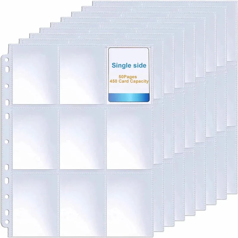 Pockets Single Side Trading Card Album Holder Sleeves 9 Pocket Clear Plastic Game Protectors Pokemon Baseball Cards 50 Pages
