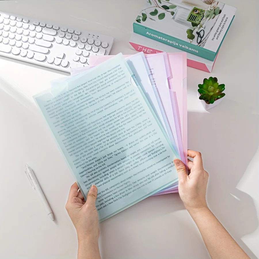 8pcs Clear Document Folder L-Type Plastic Folder Copy Safe Project Pocket US Letter/ A4 Size in Transparent Color File Organizer
