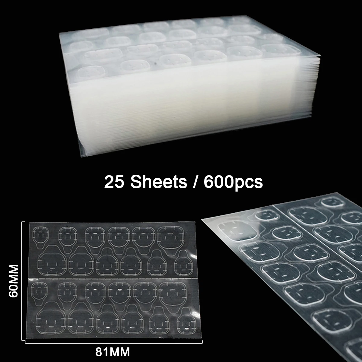 25 Sheets/600 PcsDouble Side Nail Glue Sticker Adhesive Tabs for Fake Nails Supre Sticky Waterproof Breathable Jelly Glue