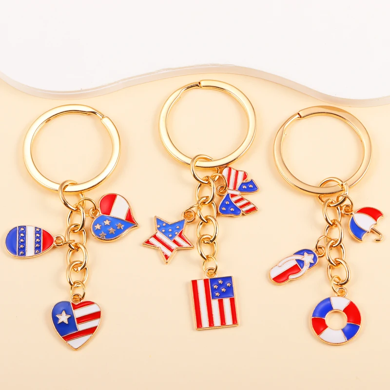 Hot Selling USA Flag Cross Heart Star Keychain America Pop Patriotism Keyrings For Women Men Car Key Bags Decor Party DIY Gifts