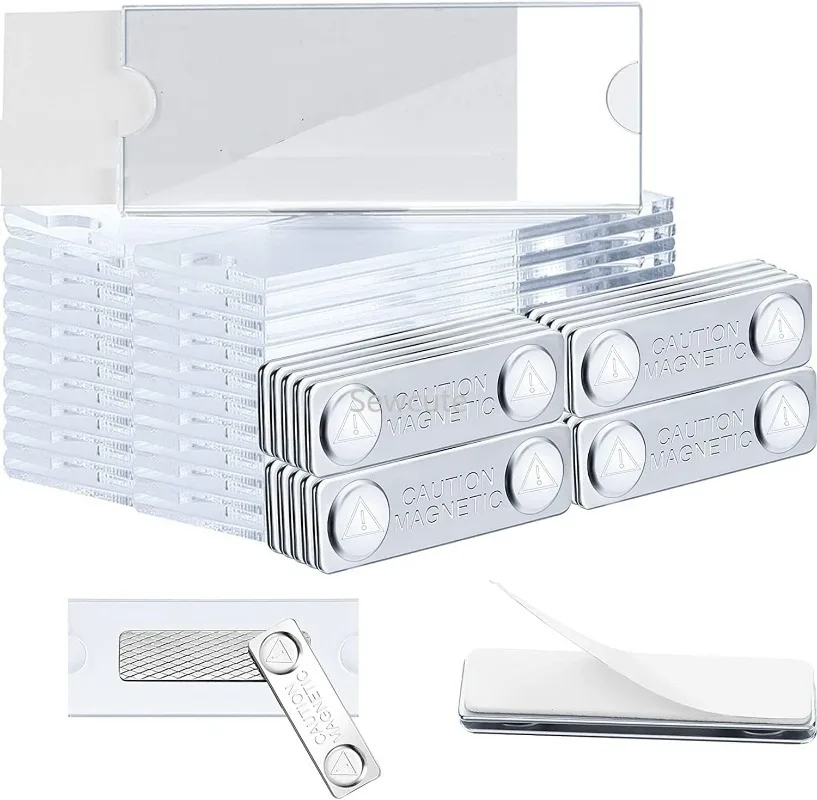 4pcs Magnetic Name Tags Kit Acrylic Badge Holders Label with Blank Markable Paper Inserts Magnets Holder Tag for School Office