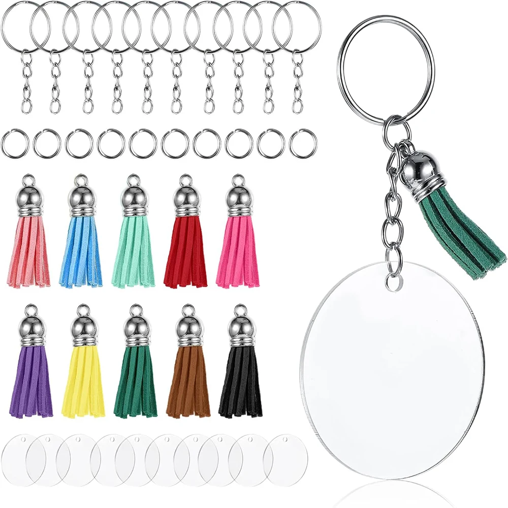 40PCS Acrylic Keychain Blanks for Vinyl Kit Including Key Rings and Jump Rings for DIY Key Chain Vinyl Crafting