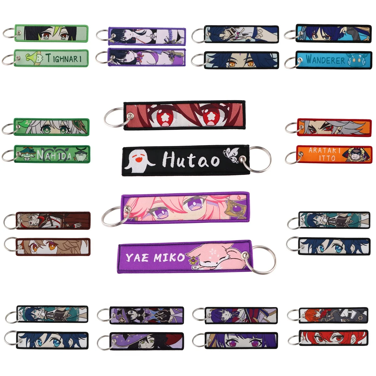 Hutao Embroidery Key Fobs Anime Game Key Tag Cartoon Keychain For Car Keys Backpack Key Ring Holder Chaveiro Jewelry Gifts