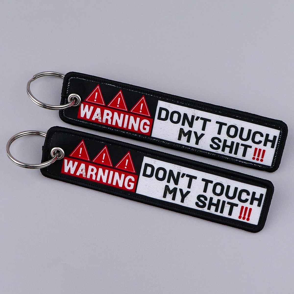 Warning Sign Embroidery Key Fobs Funny Key Tags Keychain For Motorcycles Cars Key Ring Accessories Chaveiro Jewelry Gifts
