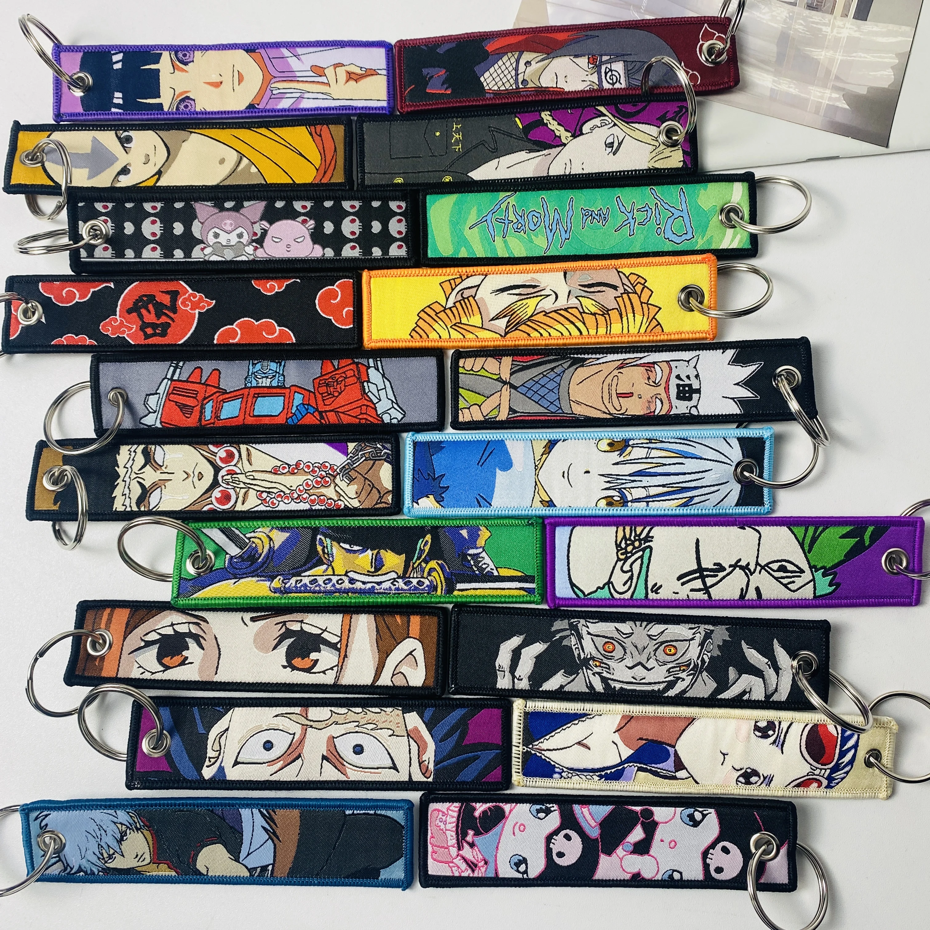 Anime Girls Key Tag Embroidery Key Fobs Keychain For Car Keys Backpack Key Ring Holder Jewelry Accessories Gifts Chaveiro