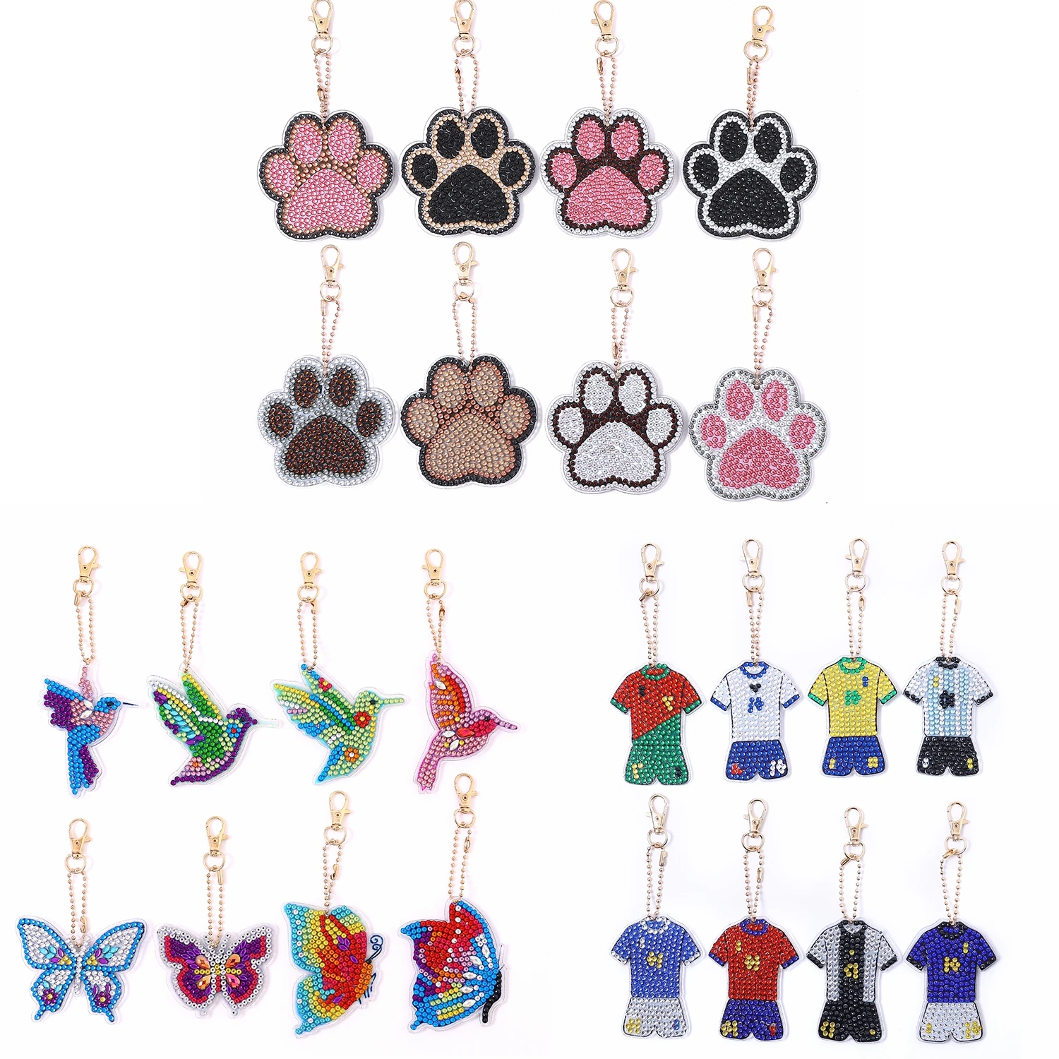 8pcs/Set DIY Butterfly Diamond Painting Keychains Kits Double Sided Crystal Rhinestones Paw Diamond Art Keychains for Adults