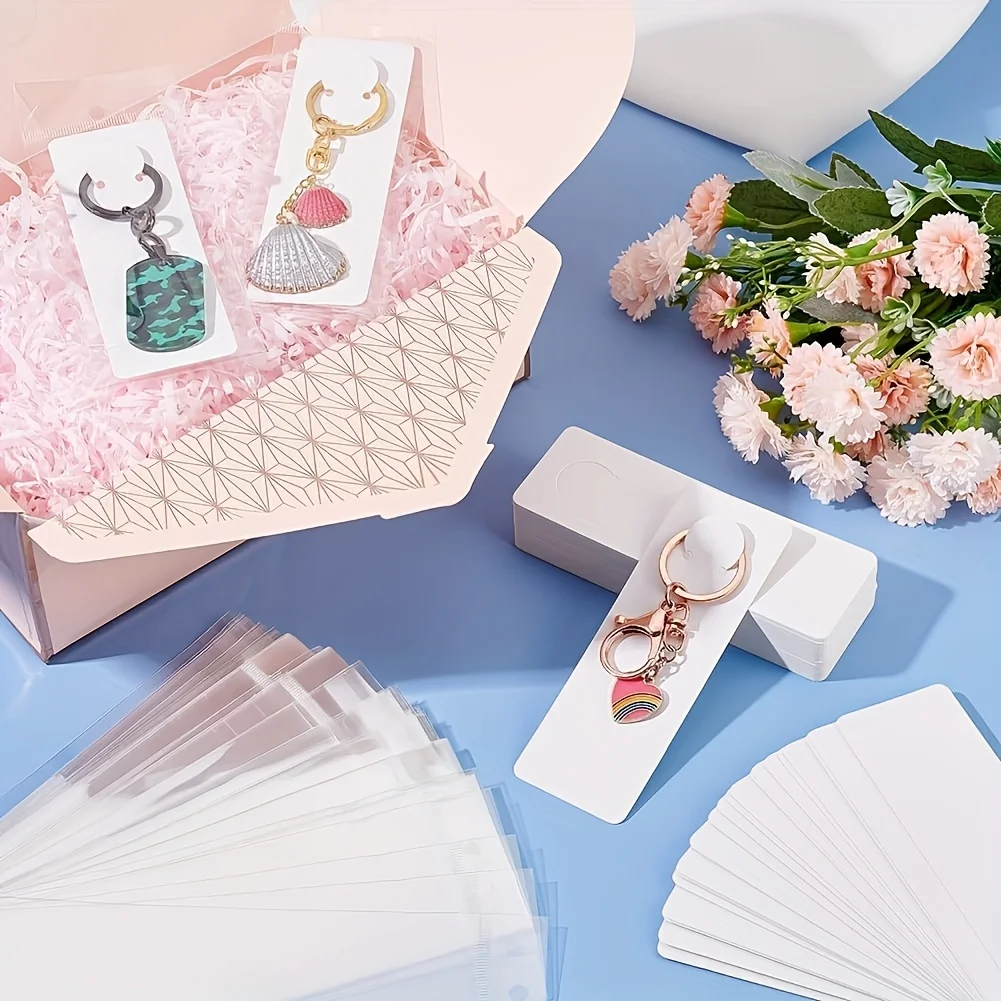 200-Pc Keychain Display Kit: Retail-Ready with 100 Recyclable Cards & 100 Clear Bags. Pre-Cut Holes for Boutiques & Trade Shows.