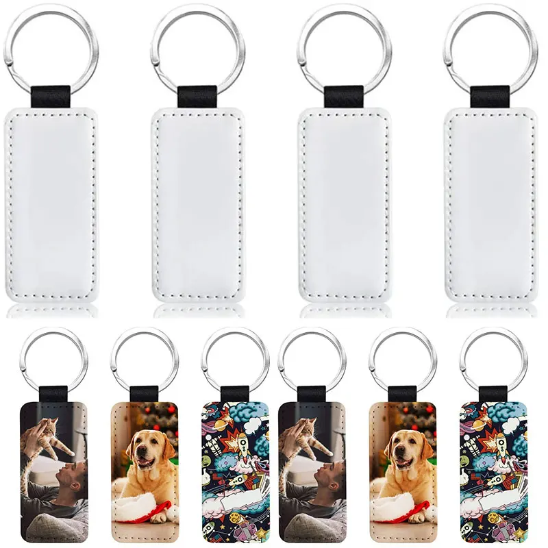 IMAZY 15/30pcs Leather Key Fob Kit Rectangular Keychain Blanks with Rings PU Laser Engraving Key chain Stamping Diy Crafts