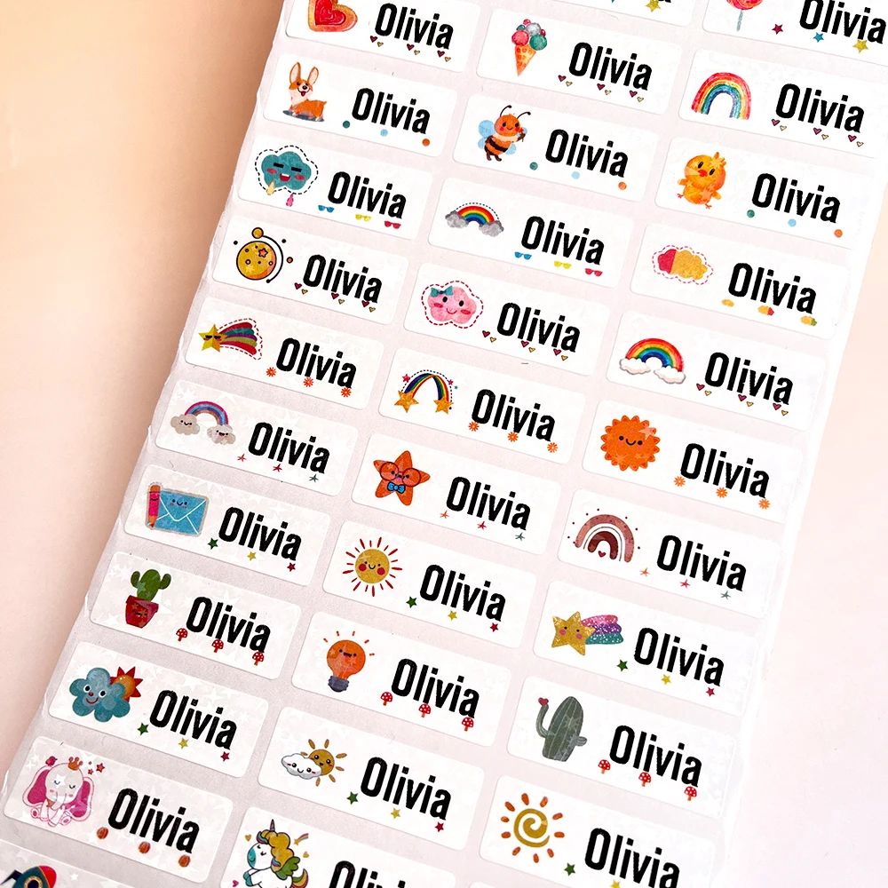 Custom Children Name Tag Stickers Waterproof Personalized Stationery First Name Labels Variety Kawaii Patterns Decals for Kids