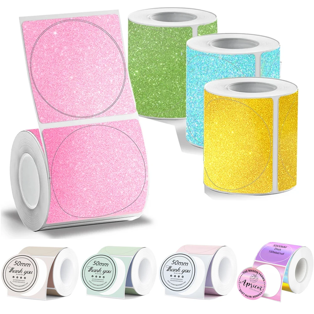 MUNBYN 2 Inch Holographic Laser Sand Dots Sticker DIY Seal Labels for Phomemo M110/M200/M120/M220 E210 P50 HPRT T20