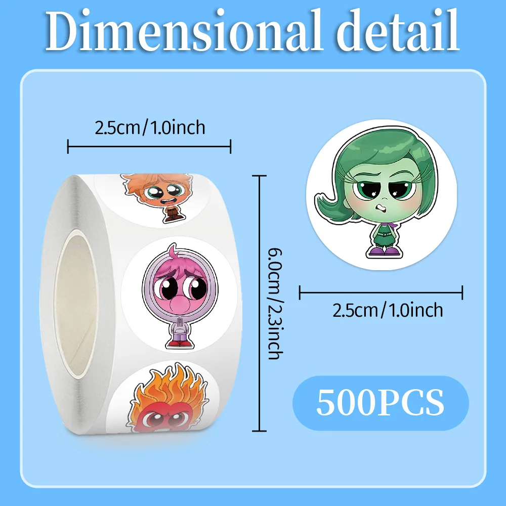 500pcs/Roll Inside Out Disney Anime Roll Stickers Kawaii Cartoon Label Seal Stickers Rolls Stickers For Phone Luggage Stickers
