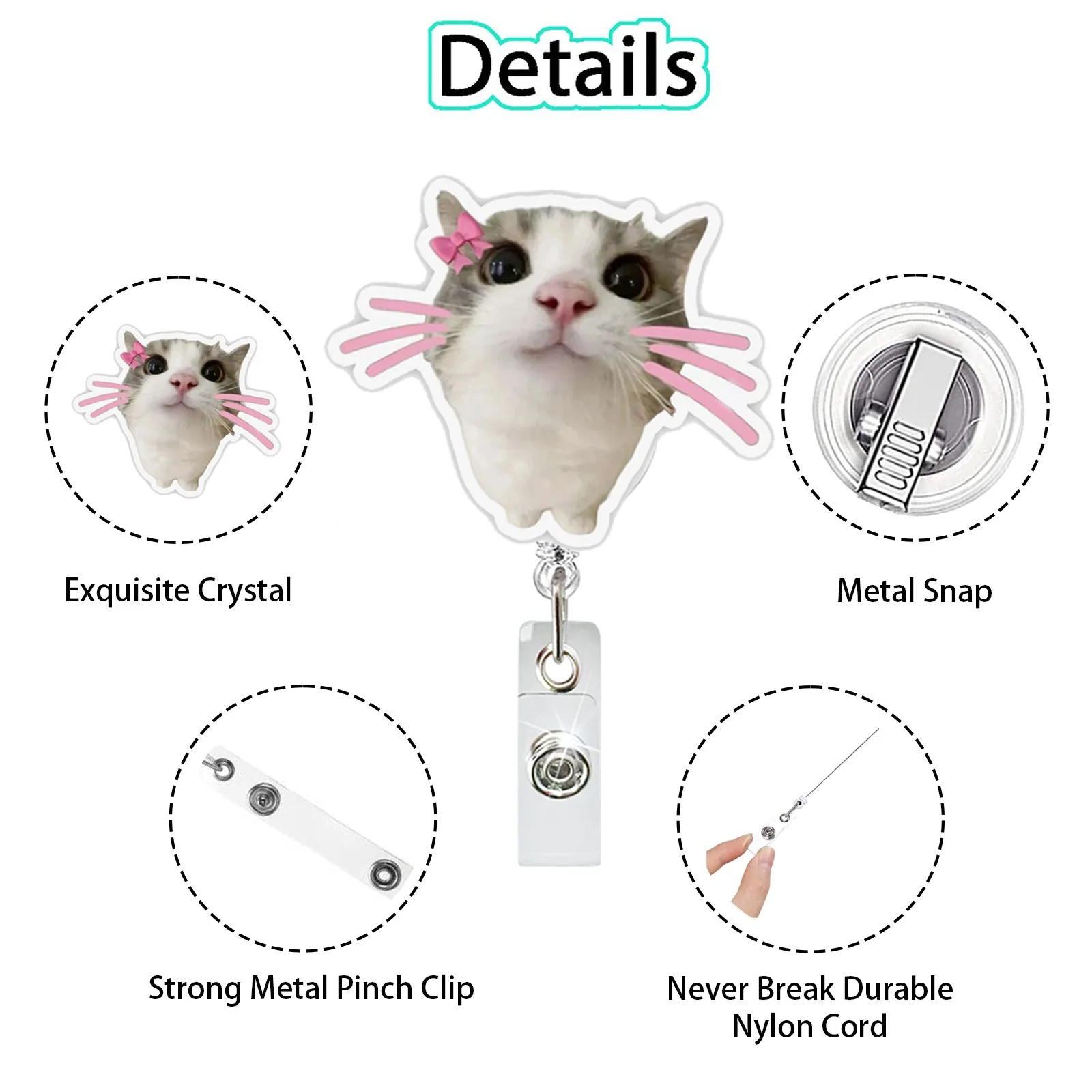 Funny Cat Expression Retractable Hospital Nurse Badge Holder Reel Cute Cartoon Meow Id Tag Work Card Holder Keychains  Read more