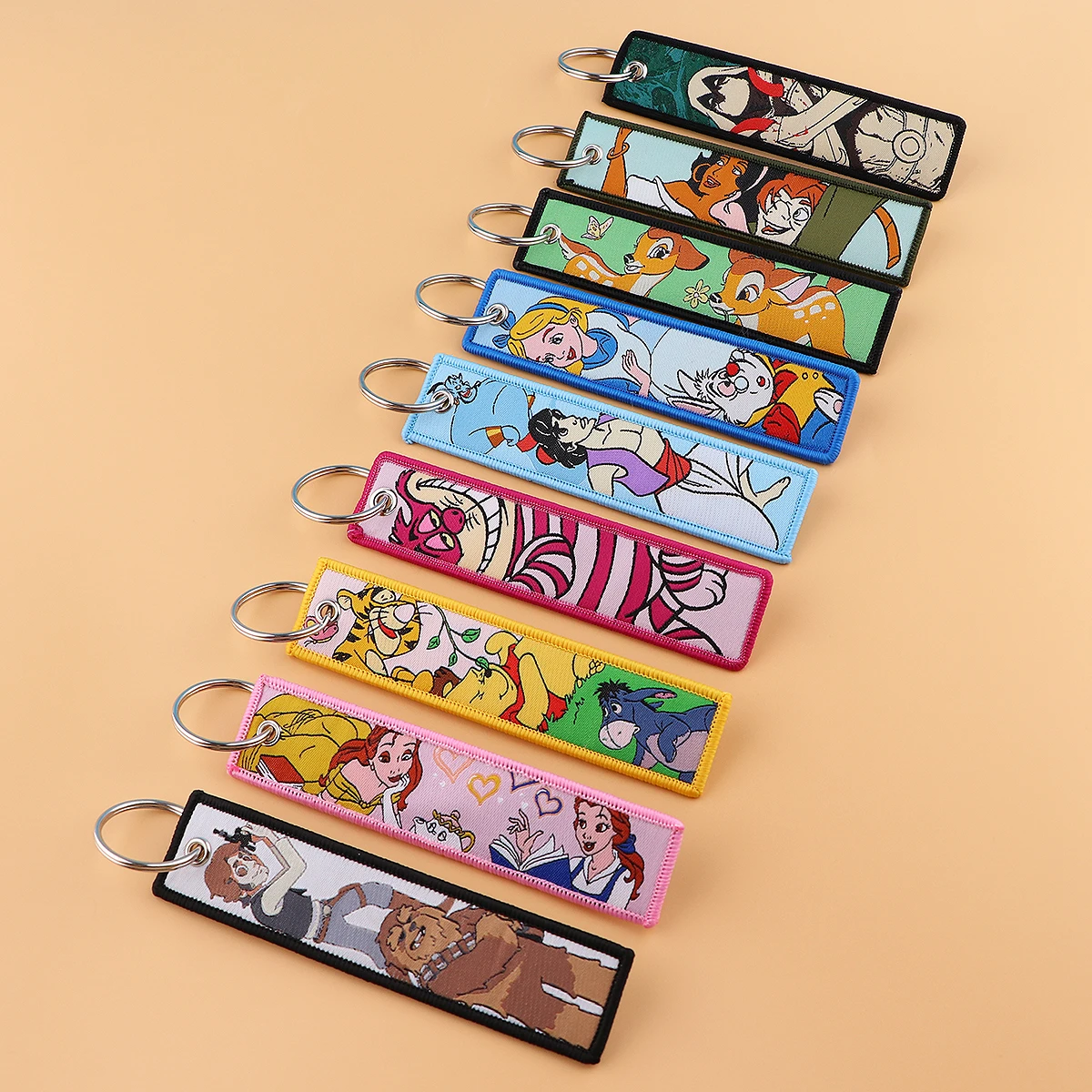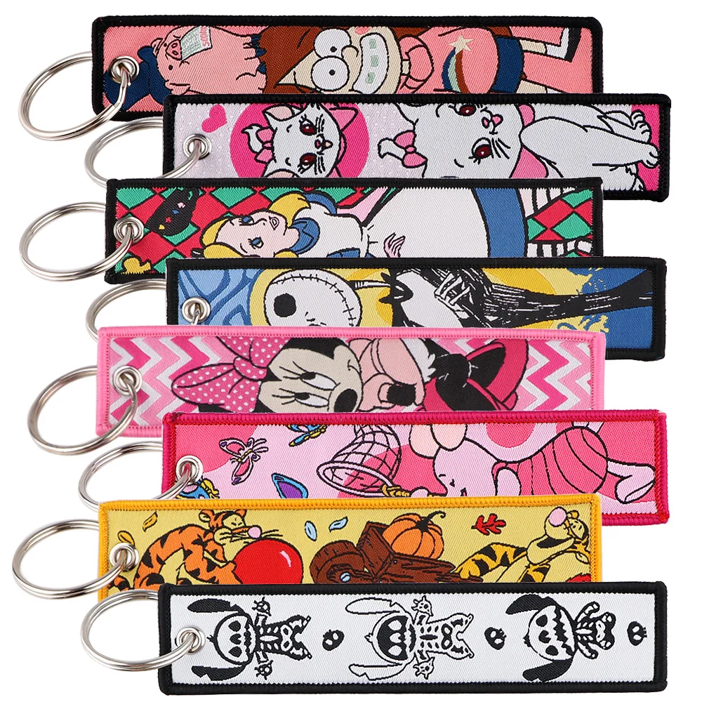 1pcs Alice in Wonderland Embroidered Keys Tag Jet Tag Keychains for Motorcycles Cars Backpack Fashion Key Ring Gifts Accessories  Read more