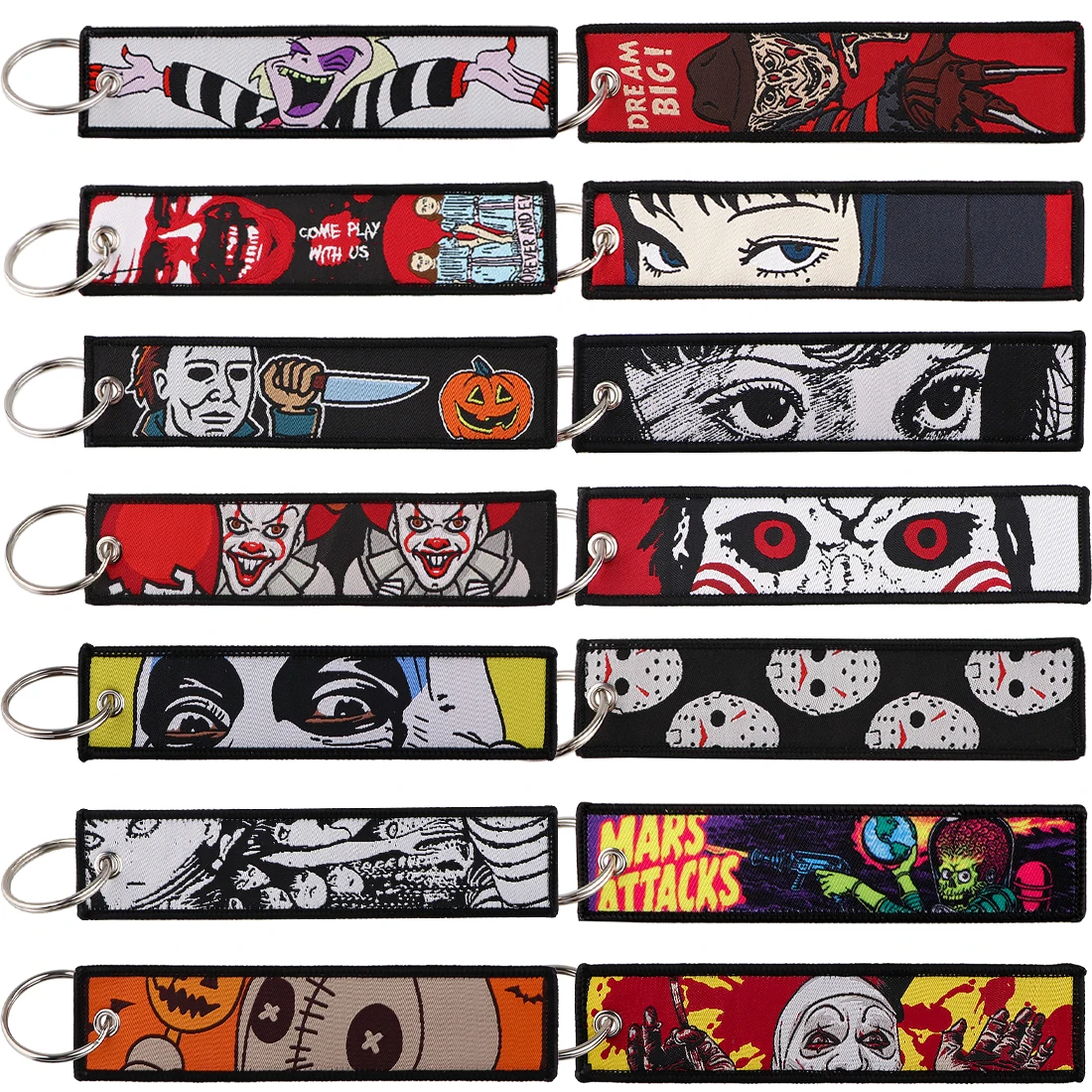 Halloween Horror Embroidery Jet Tags Killers Key Tags Motorcycles Cars Keychain for Friends Adorn Key Rings Accessories Gifts  Read more