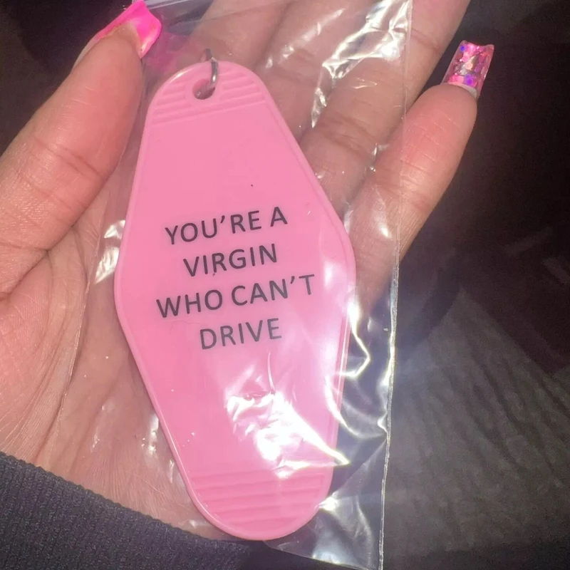 A VIRGIN WHO CAN'T DRIVE Hotel Motel Cafe Room Film KeyChain Keyring Tag Key Chains TV Show Office Fans Funny Custom logo  Read more
