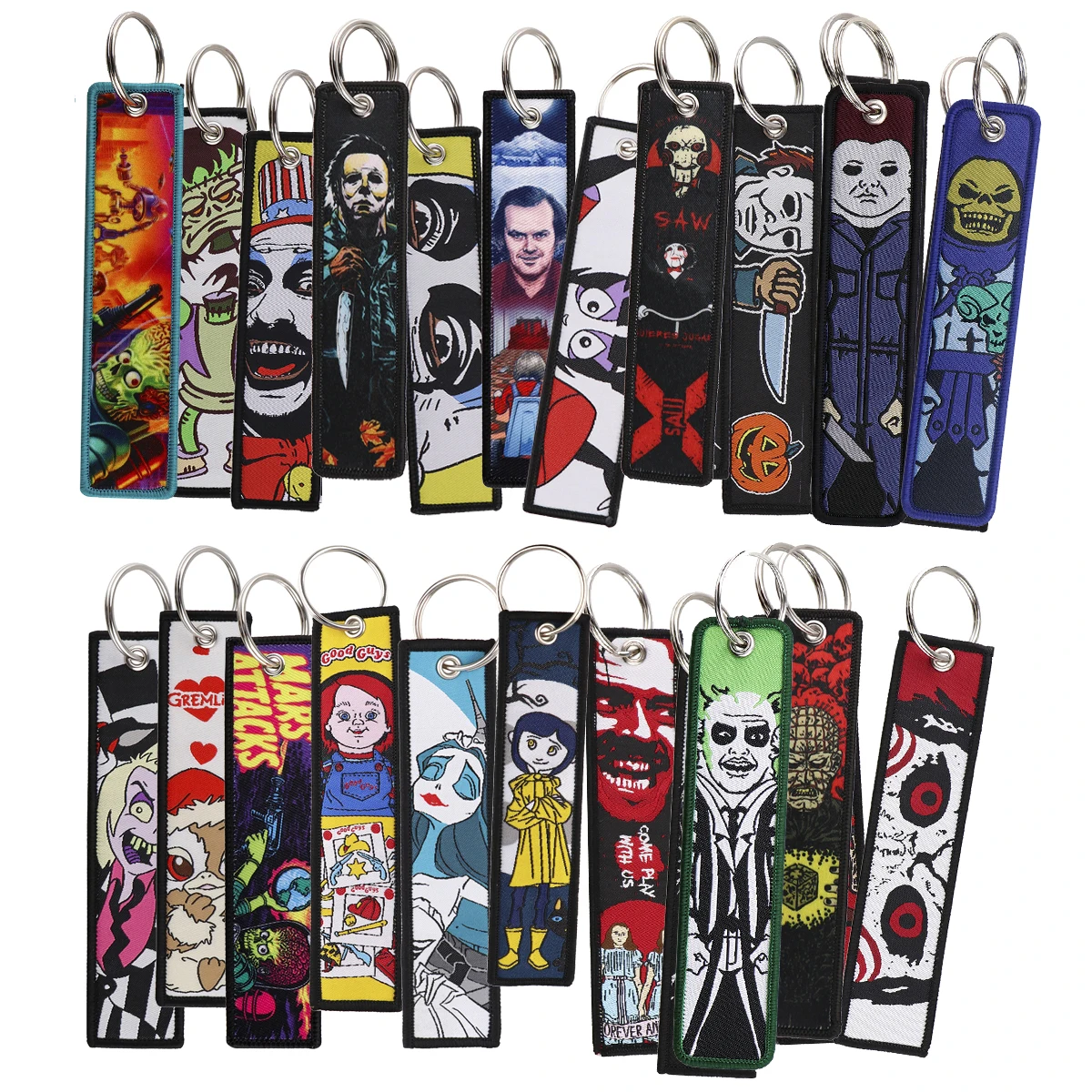 Horror Movie Embroidered Cool Car Keychain for Men Keyring Christmas Key Tag Women Man Fashion Accessories Jewelry Gifts