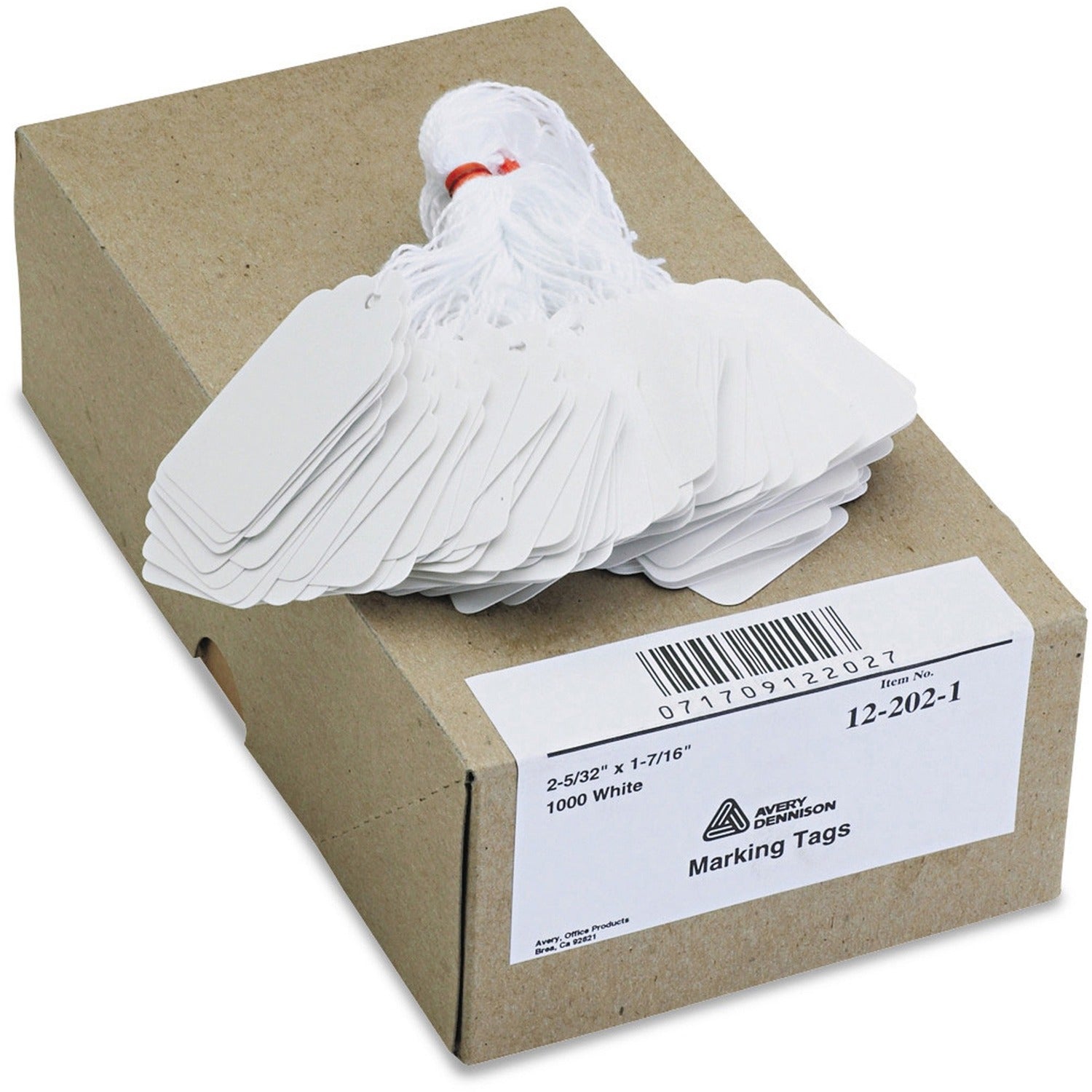 Avery 12202 White Price Tags, Strung with White Twine, 2 5/32"x1 7/16", 1000 per Pack - Box of 1000 AVE12202