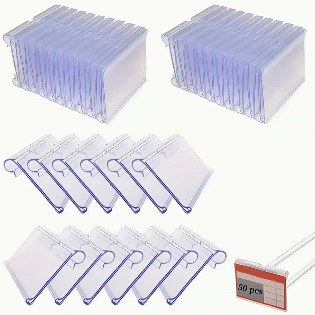 50Pcs Label Holder, Pvc Transparent Plastic Reusable Price Tag Holder, Suitable for Large Shopping Malls, Supermarkets, Small Stores