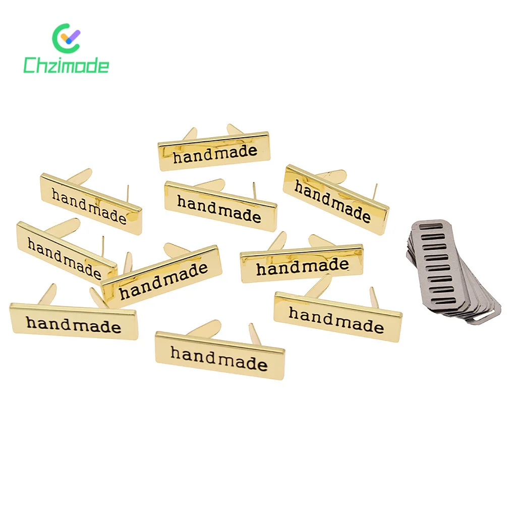 Chzimade 10Pcs Hand Made Metal Labels Tags Handmade Garment Labels for Clothes Jeans Shoes Bags DIY Letter Sewing Crafts
