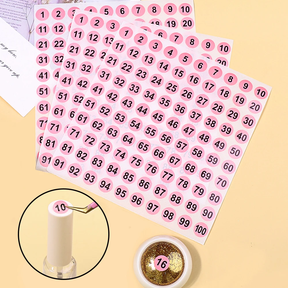 2Pcs/Lot Waterproof Pink Number Sticker Label For Nail Polish Color Gel Varnish Marking Digital Label Sticker Manicure Tool