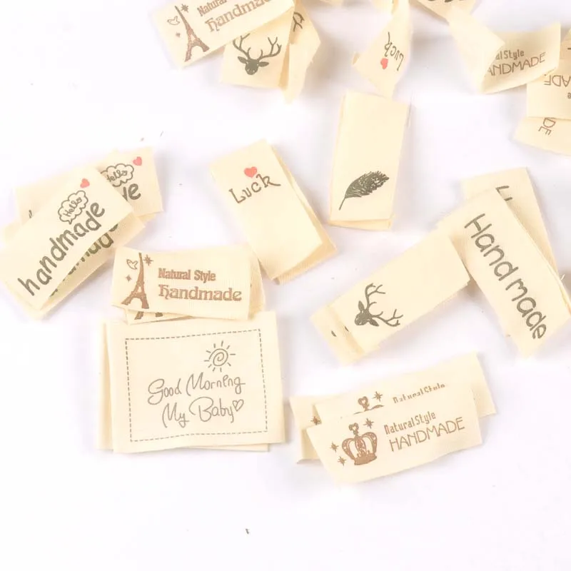50pcs Mixed Beige Handmade Printed Cotton Woven Labels For Clothing Care Label Washable Garment Tags Sewing Accessories c2395