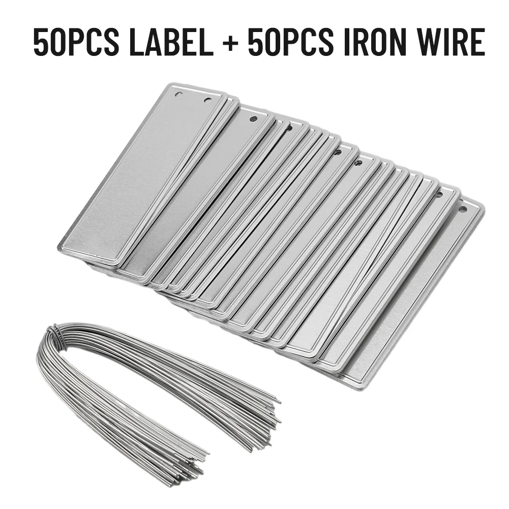 50pcs Aluminum Plant Labels Double Sided Metal Labels Tree ID Tag Waterproof Iron Wire Nursery Garden Labels Bonsai Sign Tag