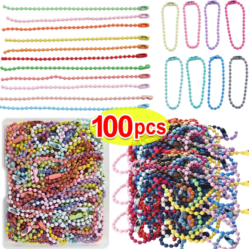 10-100pcs/Lot 10cm Iron Colorful Ball Bead Chain Fits KeyRing Key Chain Dolls Label Hand Tag Connector DIY Jewelry Making
