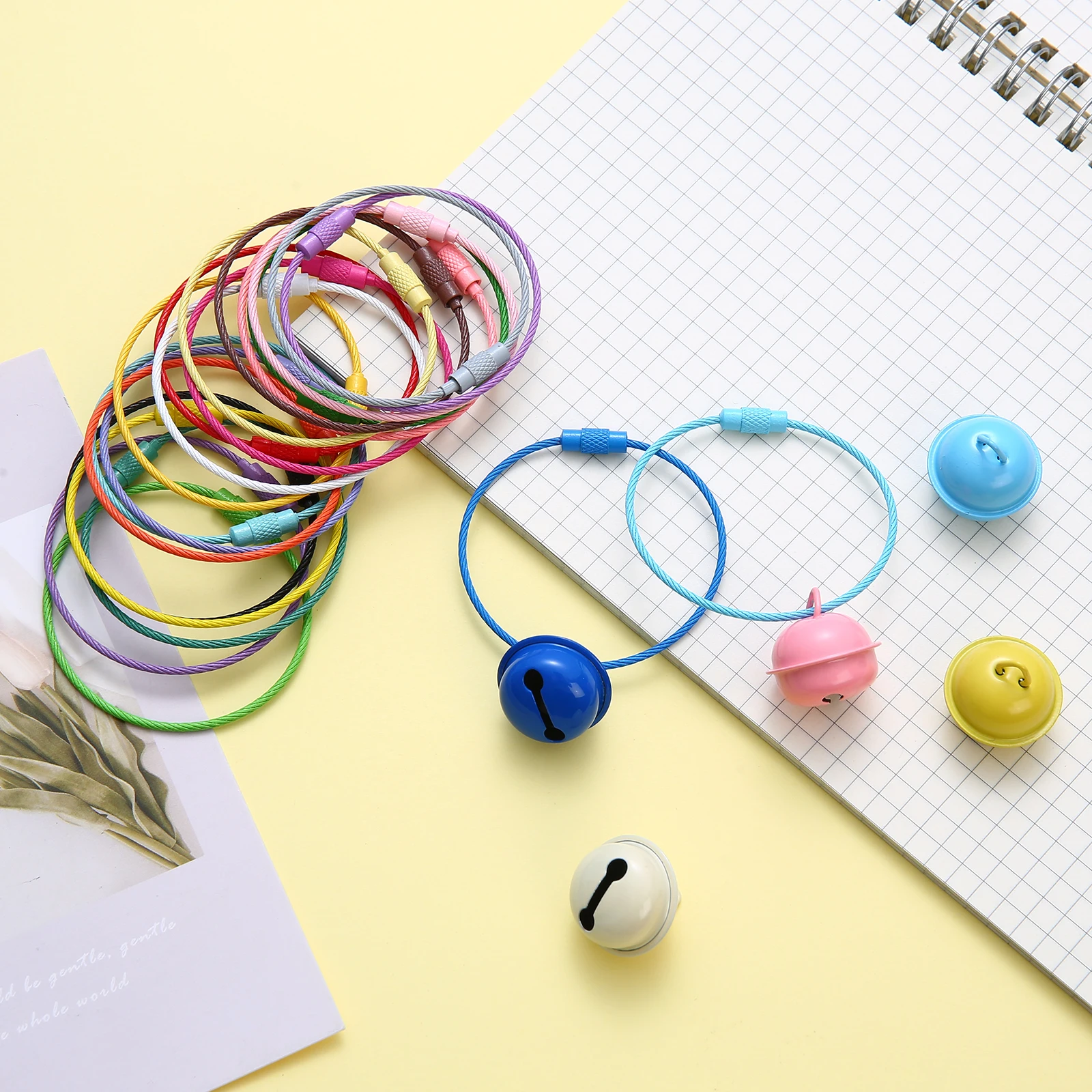 10/20/50/100 Pcs Colorful Stainless Steel Keychain Rope Outdoor Camp Luggage Tag Screw Lock Gadget 1.5*150mm diameter of 50 mm  Read more