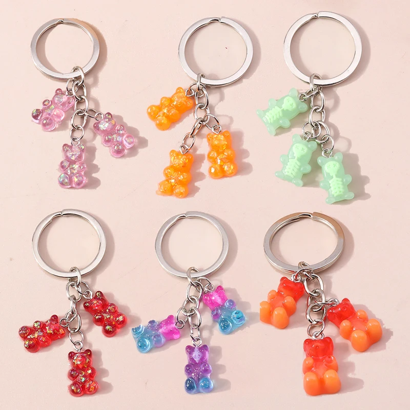 Cute Resin 3D Bear Keychain Charms Animal Keyrings Pendant for Women Girls Handbag Charms Car Keyholder DIY Jewelry Accessories