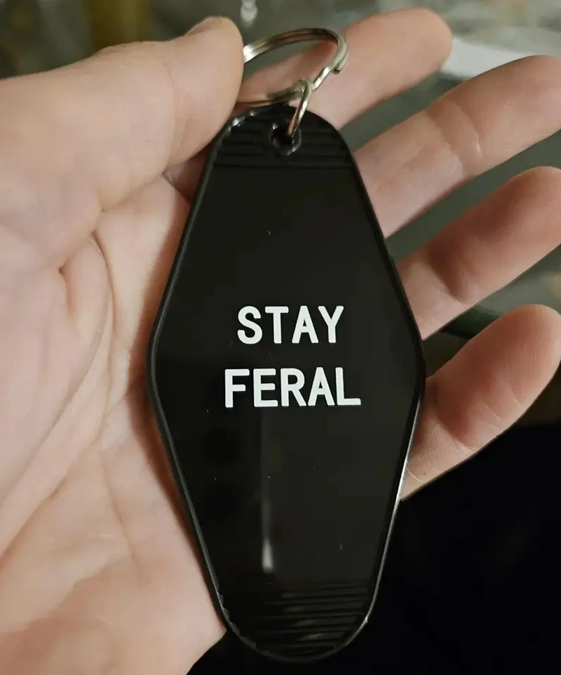 STAY FERAL Cute HOTEL KeyChain Keyring Tag Key Chains TV Show Office Fans Funny Accessory Custom logo  Read more
