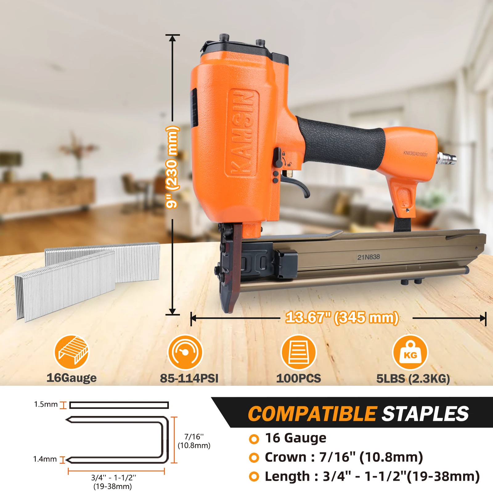 KAMSIN N838 16 Gauge Construction stapler, Industrial Pneumatic Heavy Wire Staple for Car Seats, Furniture Making Cabinets