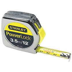 Stanley Bostitch Powerlock Tape Rules 1/2 in Wide Blade, 12 ft x 1/2 in, Inch/Metric, Single Sided, Chrome (680-33-215)