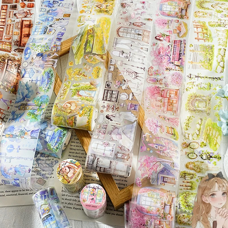 2m Matte Crystal Kawaii Princess Cat PET Washi Tape Colorful Flower Transparent Sticker Decorative Tape For Scrapbooking Journal