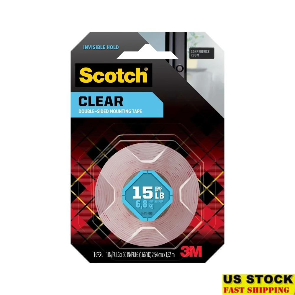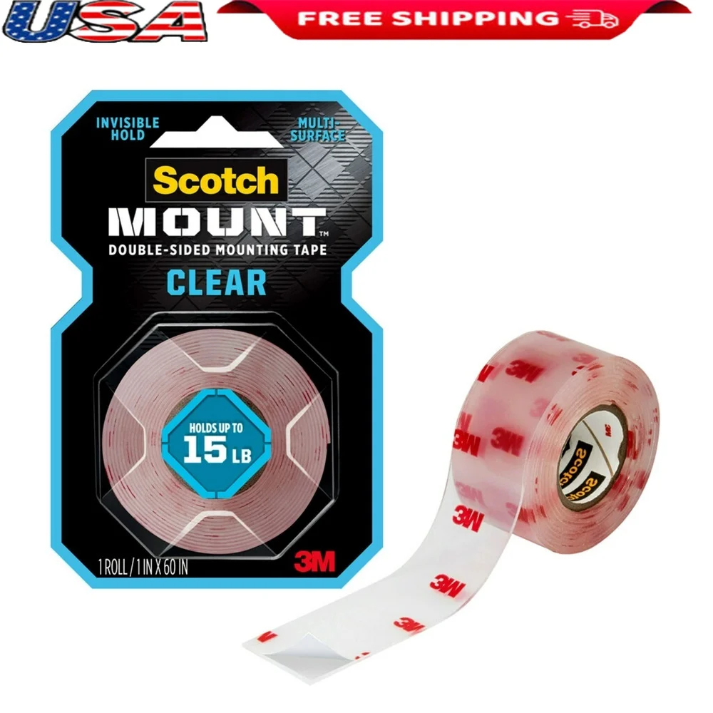 Clear Double-Sided Mounting Tape 1in x 60in Strong Adhesive Holds Up to 15lb Perfect Glass Tile Artwork Indoor Use