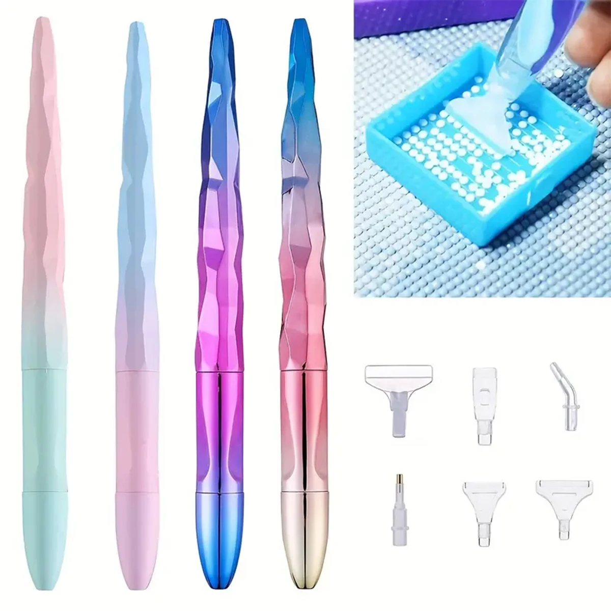5D Diamond Art Pen, Diamond Painting Pen and Accessories Ergonomic Tip Diamond Pen for Round and Square Stones (1 Pen + 6 Tips)
