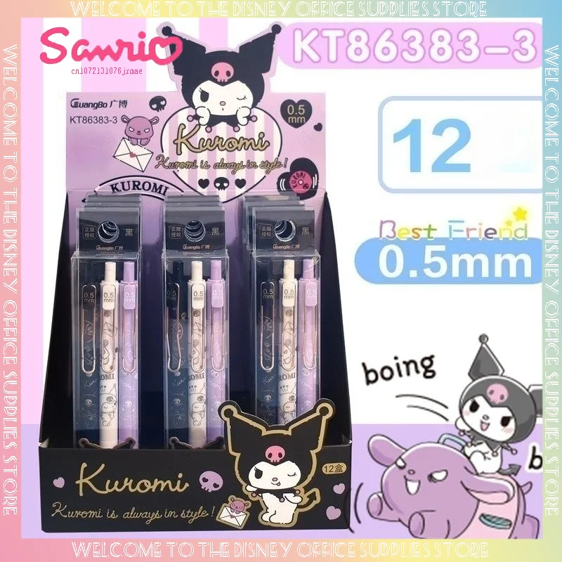 36pcs Sanrio Kuromi Gel Pens Roller Ball Pen Comfortable Bullet 0.5mm Black Signing Pen Stationery Wholesale Kt86383