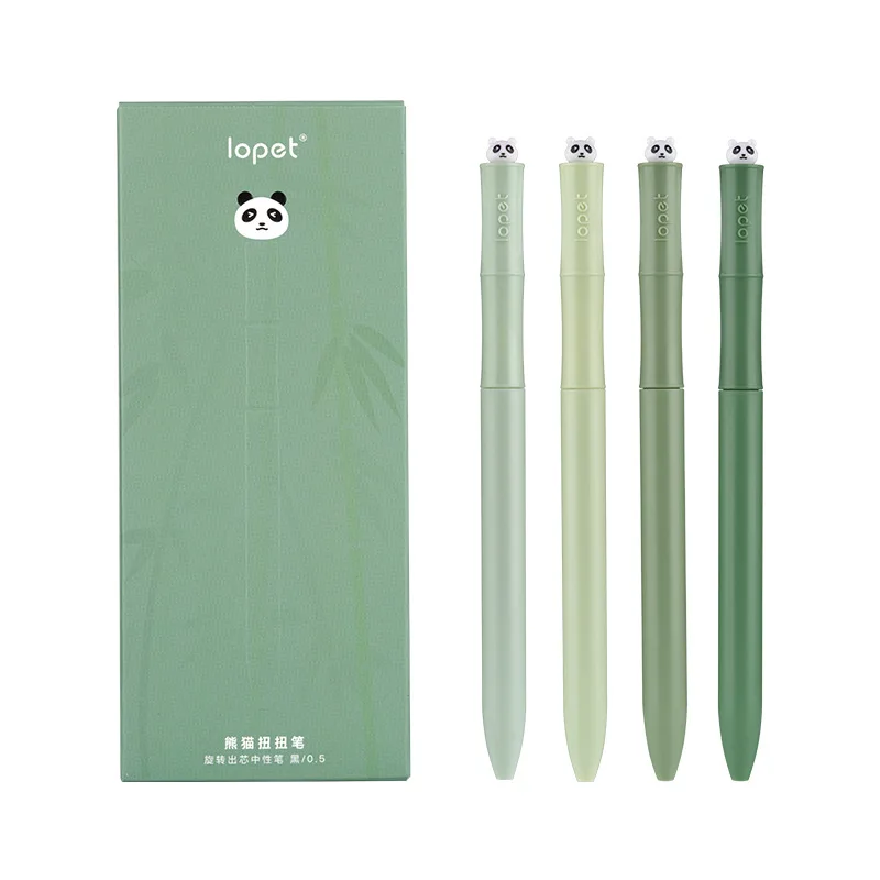 Lopet Kawaii Gel Pens 4pcs Rotating Twist Pen Signature Canetas Panda Cute Black Ink Brush Pens School Office Stationery Supplie  Read more