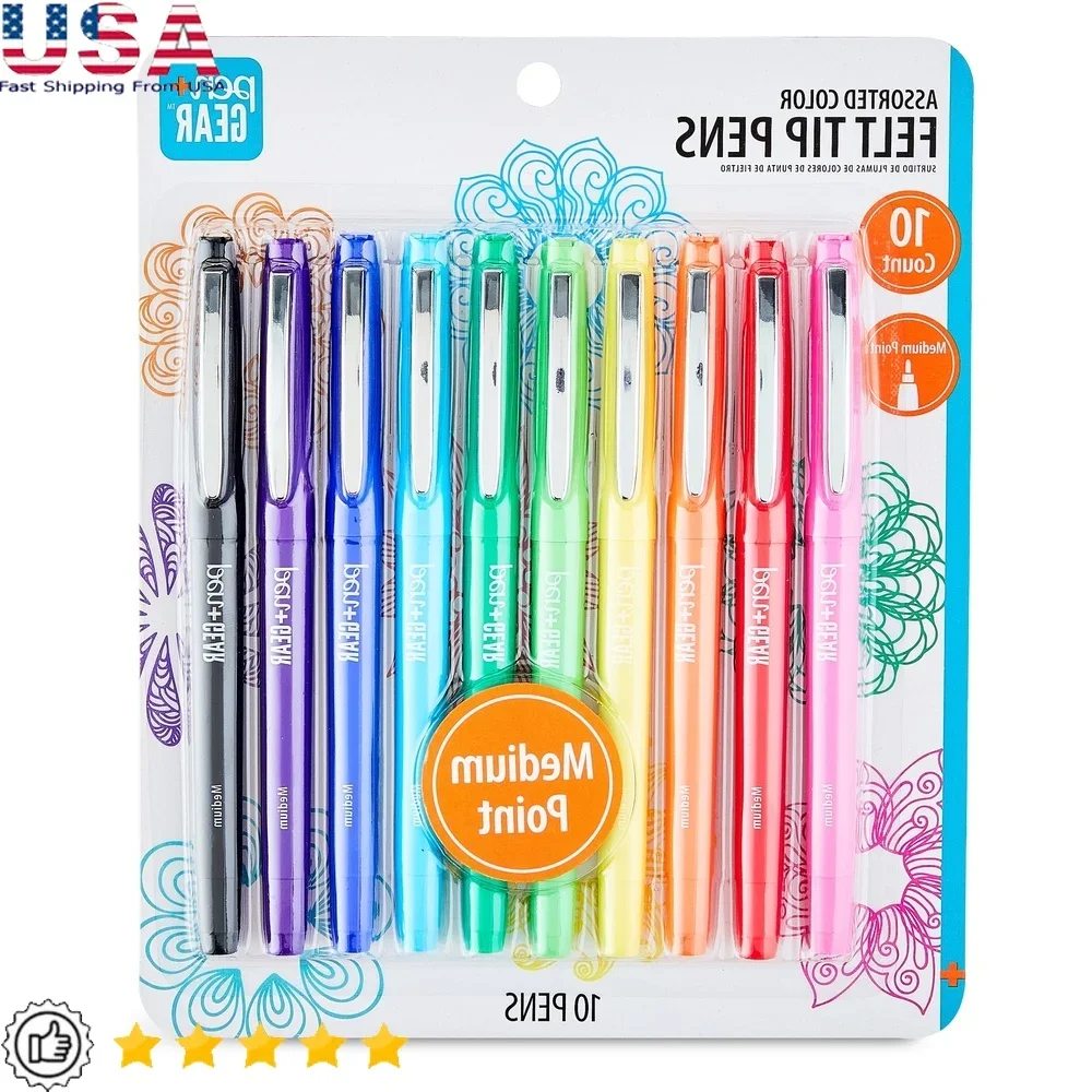 Assorted Medium Tip Felt Tip Markers 10 Count Quick Dry Smudgeproof No Bleed Ideal Grading Invitations Art Projects  Read more