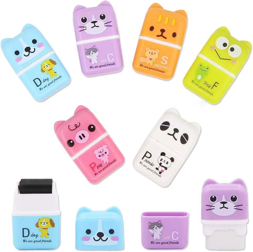 6 Pcs Cute Pencil Eraser, Cartoon Animal Themed Roller Colorful Rectangle Eraser, Pencil Rubber Erasers for Kids School Office S