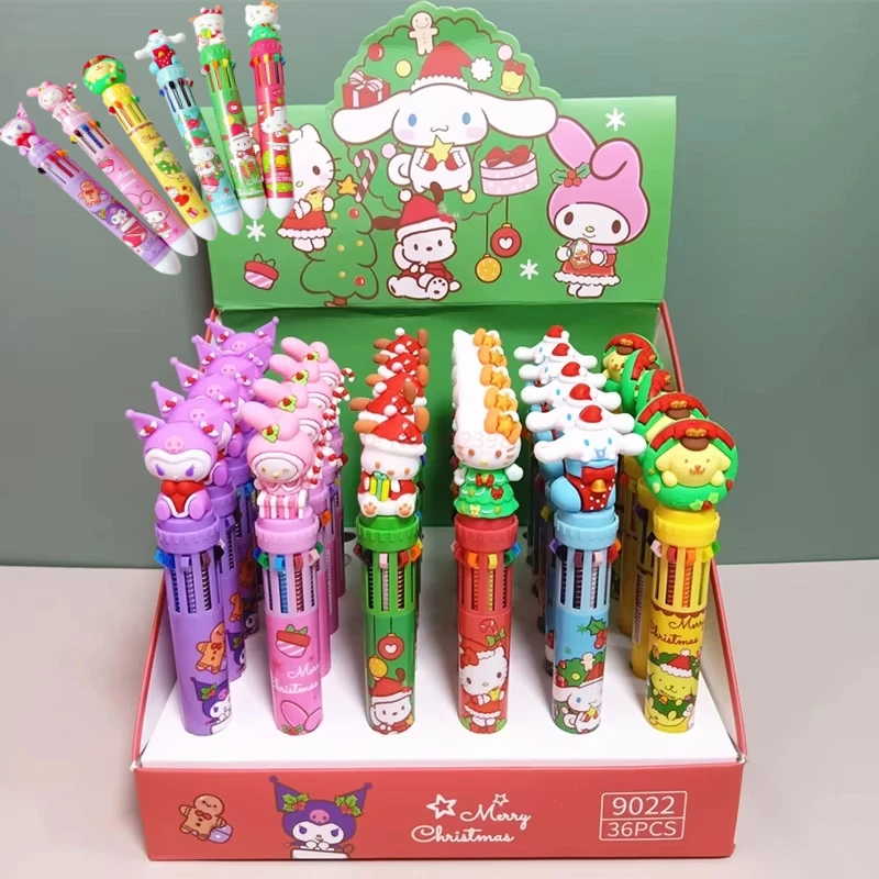 Sanrio 36pcs Ballpoint Pen Christmas 10-color Cartoon Pen 0.5mm Student Kawaii Stationery Press School Office Supplies Gifts