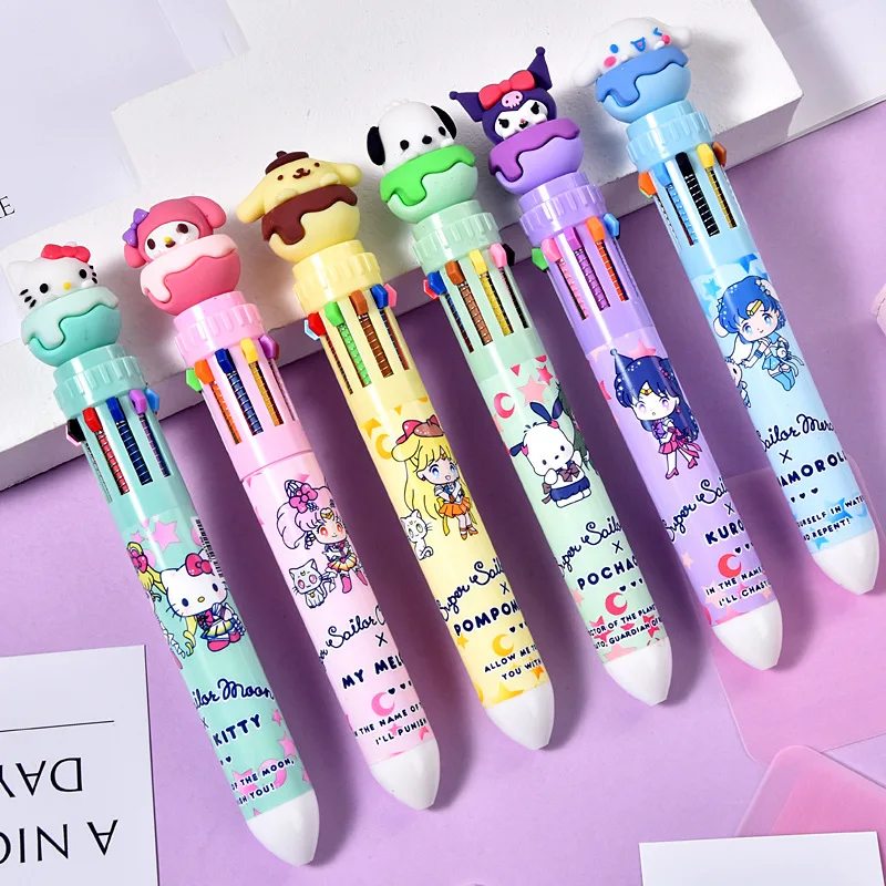 6/36pcs 10-Color Ballpoint Pen Sanrio Hello Kitty Kuromi Press Ballpoint Pen Multi Color Press Pen Student Supplies Stationery