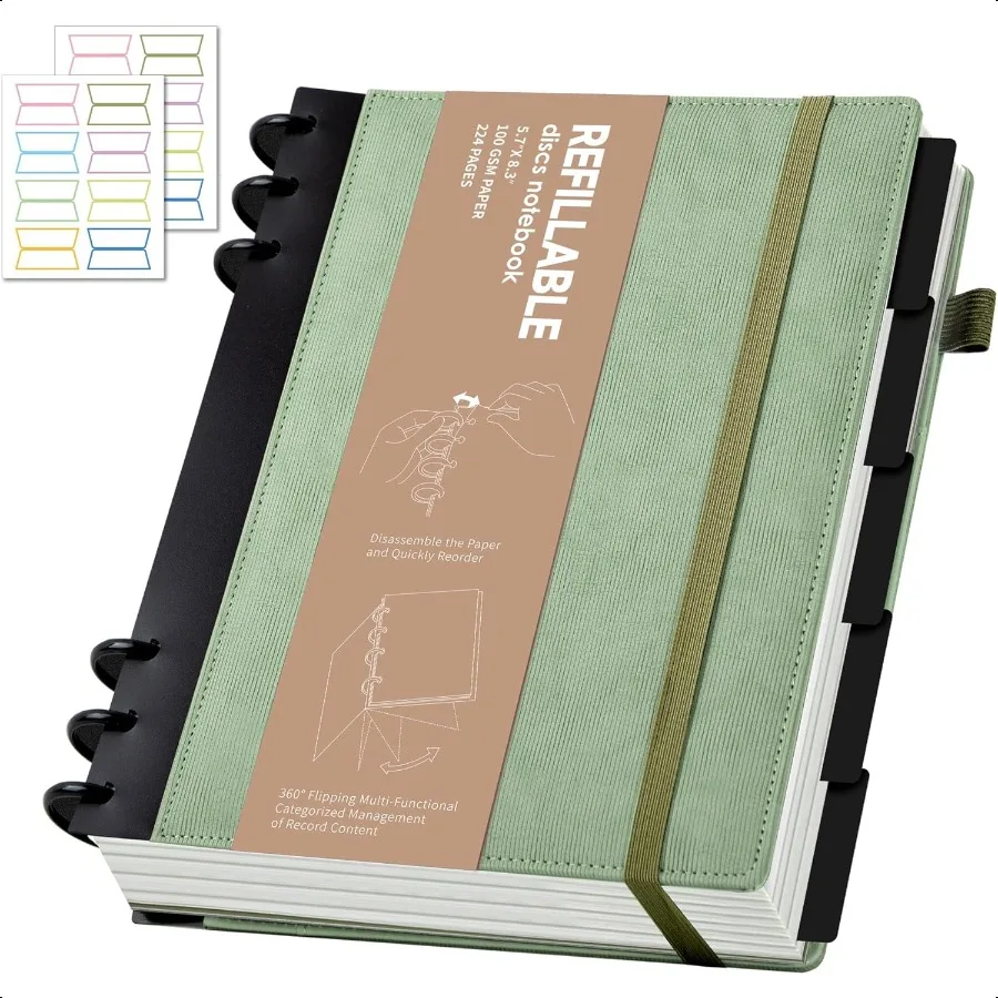 Leather Journal Notebooks for Work Refillable 224 Page 100 GSM Thick 5 Subject Notebook with Removable Dividers Tabs Hardcover