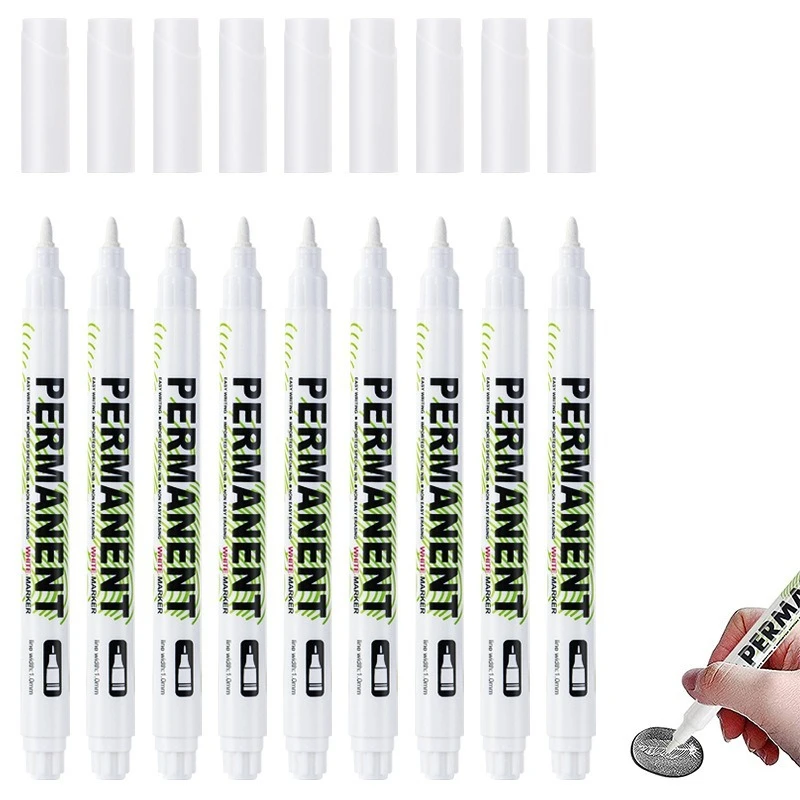 10Pcs Waterproof White Marker Pen Alcohol Paint Oily Tire Painting Graffiti Pens Permanent Gel Pen for Fabric Wood Leather 1.0MM
