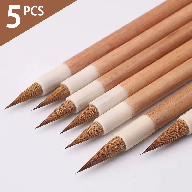 5PCS Weasel Hair Calligraphy Brush Pens Handmade Wooden Handle Chinese Painting Brush Xiaokai Regular Script Writing Brush
