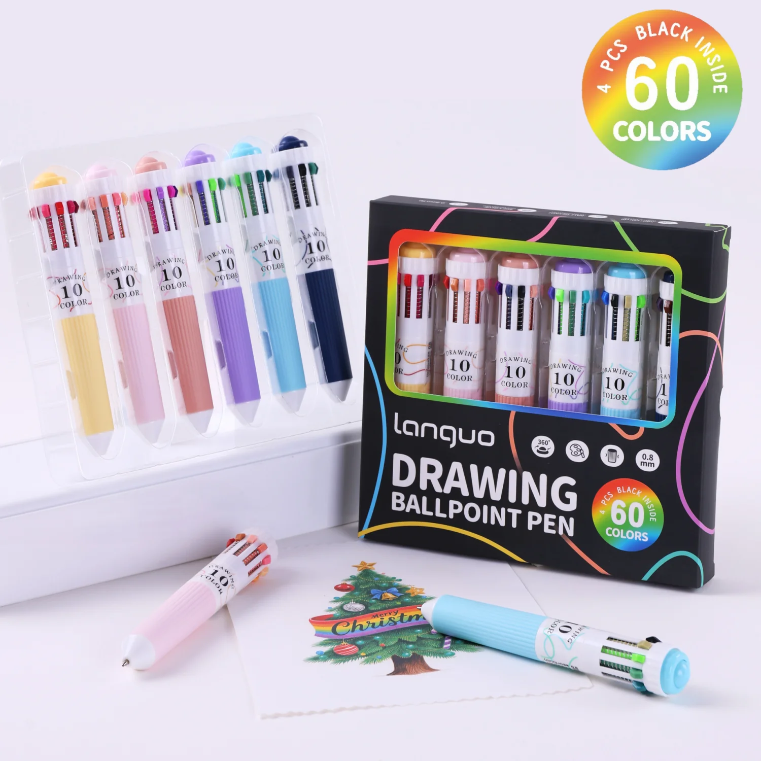 3/6 Pack Multicolor Pens, 28/60 Colors, 10-in-1 Colored Ballpoint Pen, 0.8mm Fine Point Smooth Writing, Retractable Ballpoint Pens